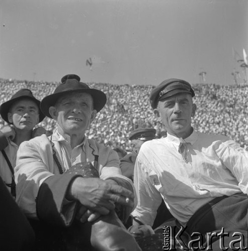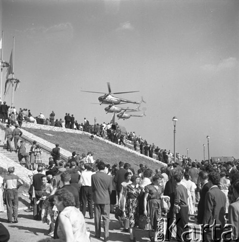 Centralne dożynki na Stadionie Dziesięciolecia - pokazy lotnicze, przelot śmigłowców nad stadionem.