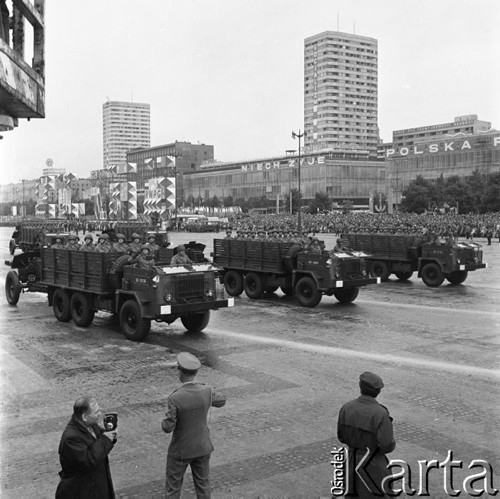 Uroczyste obchody 25-lecia PRL, defilada sportowo-wojskowa na Placu Defilad.