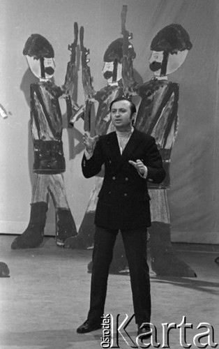 Telewizyjny koncert piosenki rosyjskiej i radzieckiej - nagrywanie programu w studio telewizyjnym, na zdjęciu Bohdan Łazuka.