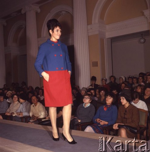 Pokaz radzieckiej mody, modelka w kostiumie.