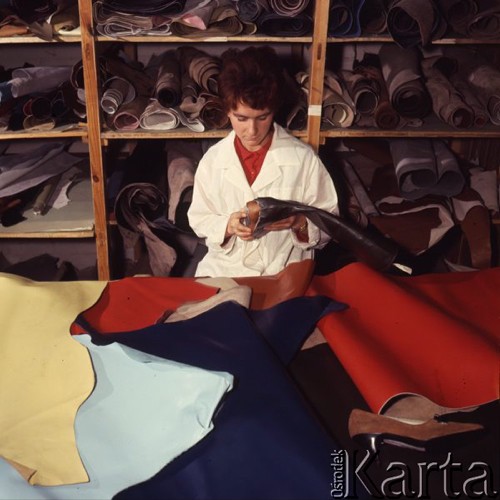 Radomskie Zakłady Przemysłu Skórzanego "Radoskór", kobieta wycinająca cholewki ze skóry.