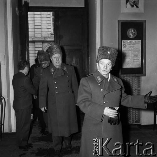 Radziecki dowódca wojskowy generał Paweł Batow (z przodu) w siedzibie Towarzystwa Przyjaźni Polsko-Radzieckiej mieszczącej się w pałacu byłego Klubu Warszawskiego Towarzystwa Myśliwskiego na ulicy Kredytowej 5/7.