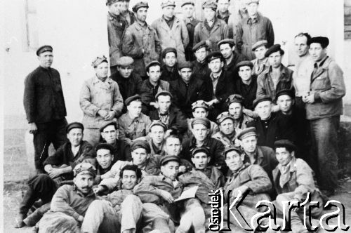 Łagiernik w ubraniu roboczym.