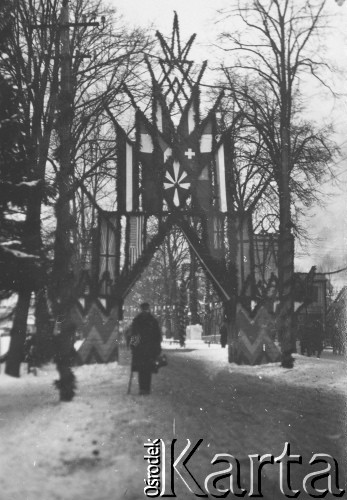 Mistrzostwa sportów zimowych, udekorowana brama.