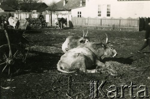Woły leżące na drodze.