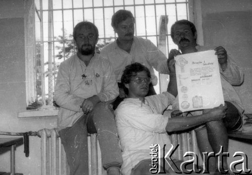 Internowani działacze NSZZ "Solidarność", na dole stoi Wiktor Mikusiński.