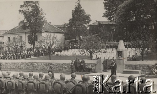 Uroczystość złożenia serca Marszałka Józefa Piłsudskiego oraz Marii Piłsudskiej z Billewiczów we wspólnym grobie na cmentarzu na Rossie. Cmentarz Wojskowy na pierwszym planie, w tle - baldachim nad Mauzoleum "Matka i Serce Syna".