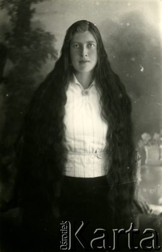 Portret młodej kobiety z rozpuszczonymi włosami.