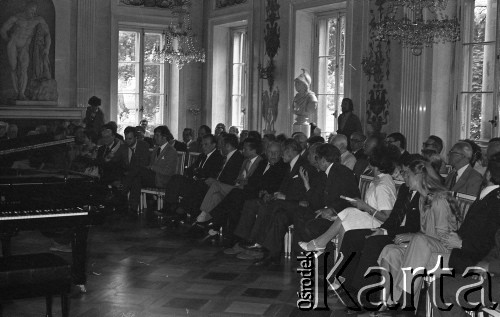 Wizyta Czesława Miłosza w Polsce po otrzymaniu Literackiej Nagrody Nobla - spotkanie z poetą w Pałacu na Wodzie w Łazienkach Królewskich. Zorganizowany w sali balowej pałacu, koncert utworów Fryderyka Chopina w wykonaniu Piotra Palecznego. W pierszym rzędzie siedzą m.in. synowie pisarza - Antoni Miłosz i Piotr Miłosz, Czesław Miłosz oraz brat pisarza - Andrzej Miłosz.