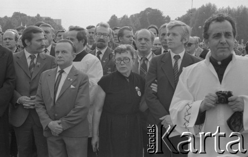 Pogrzeb Kardynała Stefana Wyszyńskiego. Duchowni niosą trumnę przez Plac Zwycięstwa. Przed trumną idzie Sekretarz Stanu Watykanu kardynał Agostino Casaroli.