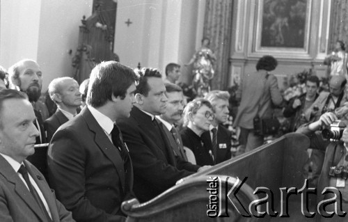 Pogrzeb Kardynała Stefana Wyszyńskiego - członkowie delegacji NSZZ "Solidarność". W pierwszej ławce siedzą: NN, Jan Kułaj, ks. Henryk Jankowski, Lech Wałęsa i Anna Walentynowicz.