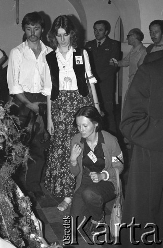 Pogrzeb Kardynała Stefana Wyszyńskiego - delegacja górników z wieńcem, na którym kwiaty ułożone zostały w kształt orła.