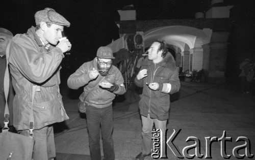 Manifestacja środowisk opozycyjnych pod Grobem Nieznanego Żołnierza. Na zdjęciu manifestanci przy autobusie.