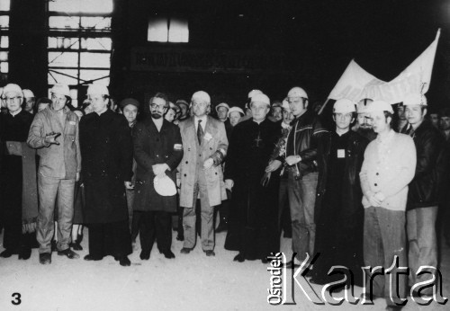 Ksiądz Jerzy Popiełuszko i biskup Zbigniew Kraszewski z wizytą w Hucie Warszawa.