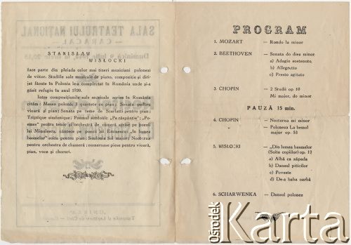 Polscy uchodźcy w Rumunii podczas II wojny światowej. Program recitalu fortepianowego Stanisława Wisłockiego.
