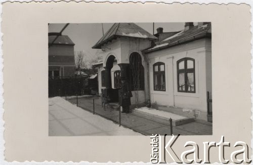Polscy uchodźcy w Rumunii podczas II wojny światowej. J. Wisłocki przed budynkiem zakwaterowania.