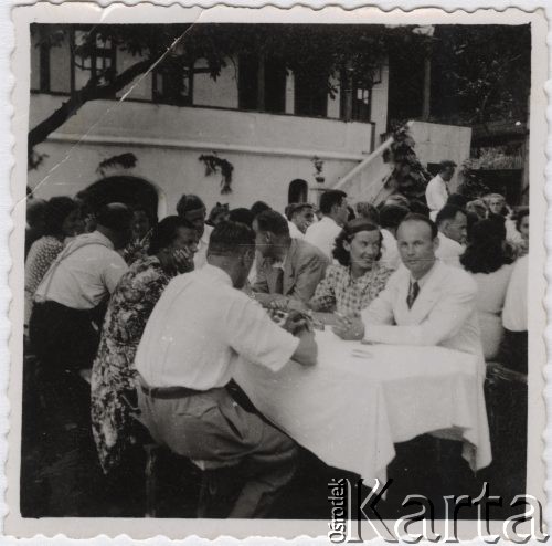 Polscy uchodźcy w Rumunii podczas II wojny światowej. Kolonie letnie dla polskich studentów - Stanisław Wisłocki [siedzi na schodkach] wraz ze swoim chórem po próbie generalnej.