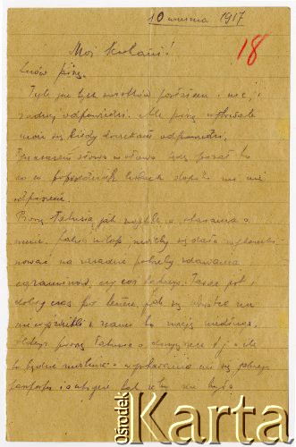 List wysłany przez Juliusza Kamlera (1898-1919), żołnierza 1 Pułku Ułanów Legionów Polskich ze Szczypiorna do rodziców Amelii i Juliusza Leopolda Kamlerów zamieszkałych w Warszawie przy ulicy Pięknej. Juliusz Kamler został internowany w obozie w Szczypiornie w lipcu 1917 roku i przebywał tam do grudnia tego samego roku. W liście prosi rodziców o załatwienie dla niego urlopu, zastanawia się nad ucieczką, w związku z czym prosi o paszport oraz informuje o kontynuowaniu nauki w obozie.