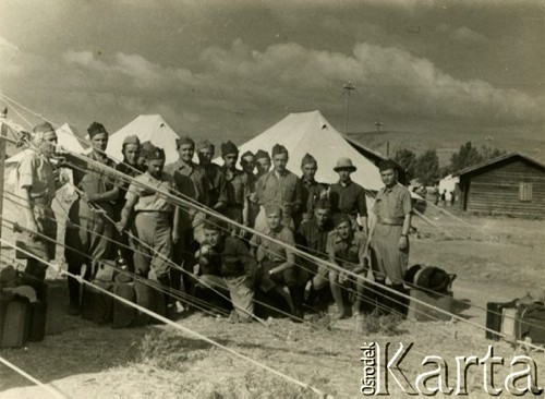 Żołnierze Samodzielnej Brygady Strzelców Karpackich. Oryginalny podpis na odwrocie fotografii: "Przed namiotem w Samaku. D-ca kpt. Lech. Po przejściu granicy syryjskiej na str. Palestyny".