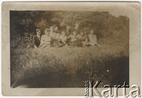 Grupa dziewcząt z Polski podczas niedzielnej wycieczki. Pracowały one w zakładach Kocha przerabiających odzież przywożoną z obozów koncentracyjnych. W środku stoi Zygmunt, pracował jako krojczy w zakładach Kocha.