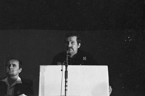 Obrady I Krajowego Zjazdu Delegatów NSZZ „Solidarność”, Lech Wałęsa na mównicy.