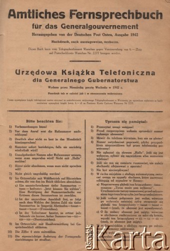 Urzędowa Książka Telefoniczna dla Generalnego Gubernatorstwa wydana przez Niemiecką pocztę Wschodu w 1942 r. Abonenci warszawscy m.in. Władysław Bartoszewski.