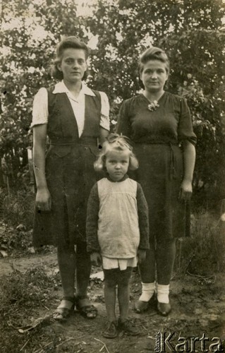 Maria Cwalina (stoi z lewej) i Halina Zaorska, z przodu stoi Jadwiga Cwalina.