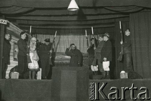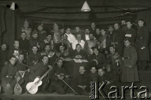 Obóz internowania dla żołnierzy Wojska Polskiego, zespół teatralny i muzyczny po premierze sztuki kpt. Józefa Bzowskiego "Kmicic w Częstochowie".