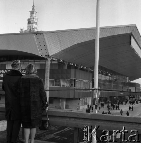 Nowo oddany do użytku dworzec Warszawa Centralna. W tle fragment Pałacu Kultury i Nauki.