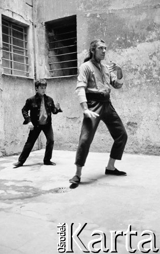 Aktor The Living Theatre Stefan Schulberg z synem ćwiczący tai chi.