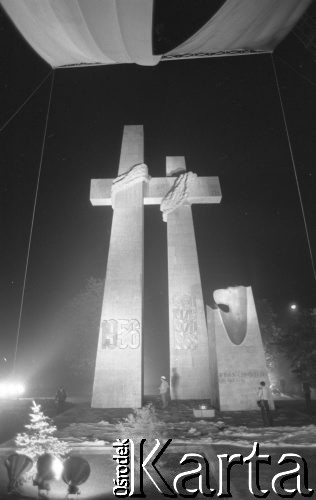 Plac Mickiewicza - nocna próba przed odsłonięciem pomnika Ofiar Czerwca 1956.