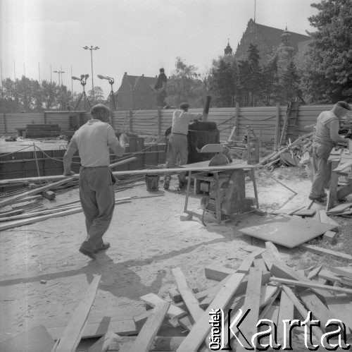 Robotnicy na placu budowy pomnika Ofiar Czerwca 1956.