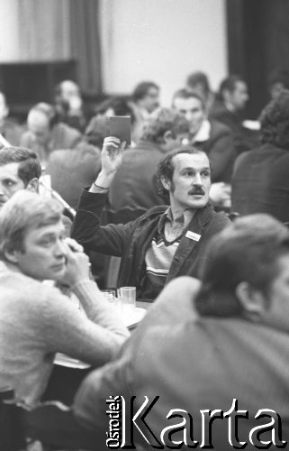 Obrady Komisji Krajowej NSZZ "Solidarność" w Stoczni Gdańskiej. Na zdjęciu Lech Wałęsa.