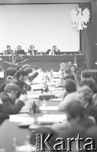 Obrady Komisji Krajowej NSZZ "Solidarność" w Stoczni Gdańskiej. Na zdjęciu sala obrad.