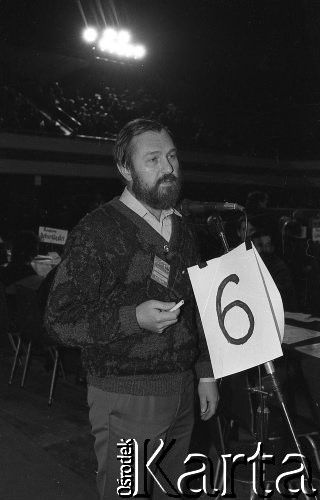 III Krajowy Zjazd Delegatów NSZZ "Solidarność". Przemawia Tomasz Wójcik - przewodniczący Zarządu Regionu Dolny Śląsk NSZZ "Solidarność".
