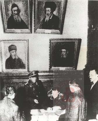 Żydówka z dziećmi na schodach przed sądem w getcie.