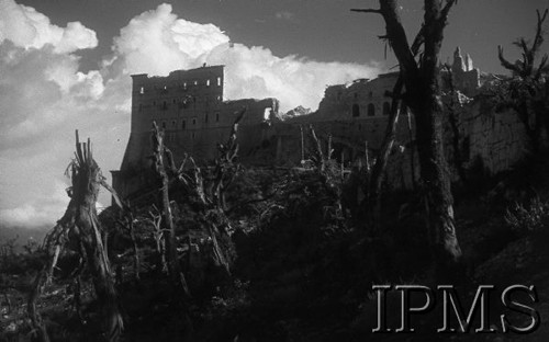 Bitwa pod Monte Cassino, widok zniszczonego klasztoru Benedyktynów.