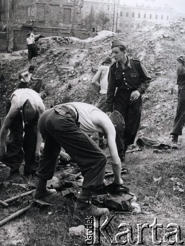 Odbudowa Warszawy - junacy z organizacji "Służba Polsce" podczas odgruzowywania rejonu ulicy Wielkiej (obecnie plac Defilad).