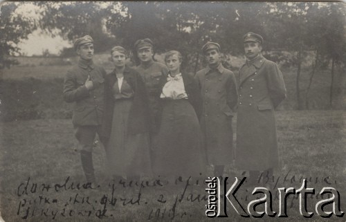Grupa oficerów z II Pułku Strzelców Bytomskich i pielęgniarka z Czerwonego Krzyża.