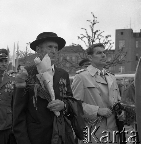 Uroczystość odsłonięcia Pomnika Żołnierza Polskiego i Niemieckiego Antyfaszysty. Nz. delegacja z Polski z kwiatami.