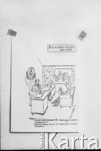 Rysunek satyryczny dotyczący internowania Jacka Kuronia.