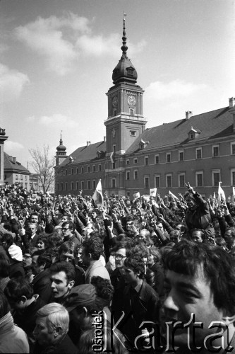 Niezależna demonstracja na Starym Mieście, zorganizowana przez podziemne struktury "Solidarności" w rocznicę uchwalenia Konstytucji 3 Maja.