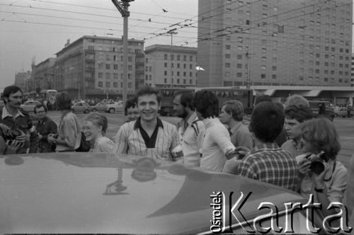 Kierowcy autobusów miejskich i ciężarówek zablokowali rondo u zbiegu ulic Marszałkowskiej i Alei Jerozolimskich. Protestowali w ten sposób przeciwko obniżce kartkowych przydziałów mięsa i trudnościom zaopatrzeniowym. Strajk został zorganizowany przez Zarząd Regionu NSZZ "Solidarność" Region Mazowsze. Na zdjęciu m.in. przewodniczący Zarządu Regionu Mazowsze Zbigniew Bujak (w jasnej koszuli z czarnym kołnierzykiem).
