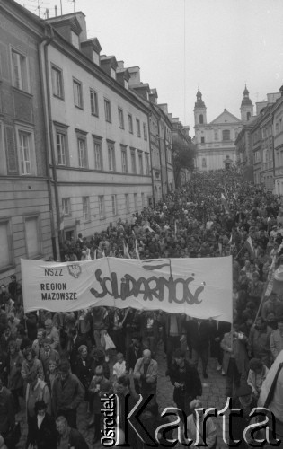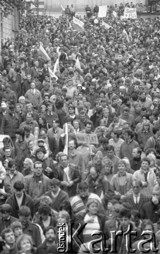 Manifestacja zorganizowana przez NSZZ "Solidarność". Wzięli w niej udział kandydaci na posłów i senatorów z ramienia opozycji. Na zdjęciu tłum manifestantów.