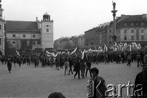 Niezależna demonstracja na Starym Mieście, zorganizowana przez podziemne struktury "Solidarności" w rocznicę uchwalenia Konstytucji 3 Maja.
