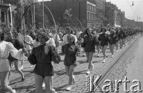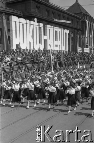 Pochód pierwszomajowy, hasło: "Pokój-Bierut".