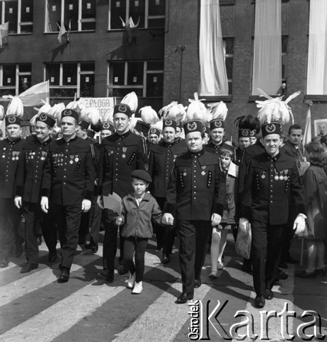 Przedstawiciele władz wojewódzkich w pochodzie pierwszomajowym, od prawej idą: Jerzy Ziętek, Edward Gierek i Zdzisław Grudzień.