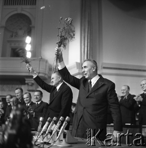Zakończenie VI Zjazdu Polskiej Zjednoczonej Partii Robotniczej, Edward Gierek i Piotr Jaroszewicz.