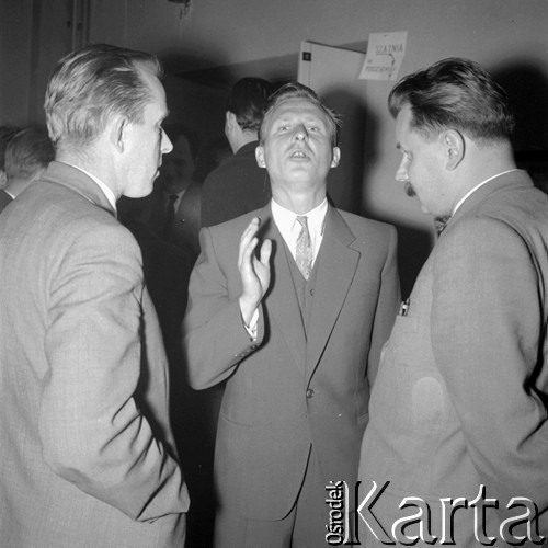 Delegaci na III Zjazd Związku Młodzieży Wiejskiej, rozmowy w kuluarach.