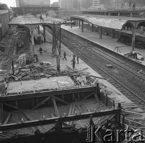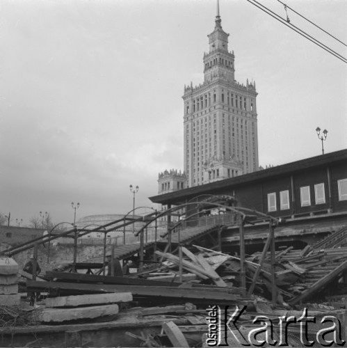 Rozbiórka dawnego dworca Śródmieście, w tle Pałac Kultury i Nauki.